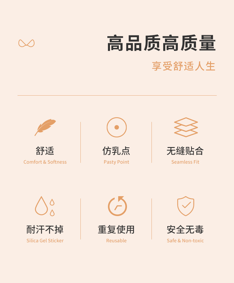 Cross-Border Supply Wholesale With Rubber Pure Silicone Nipple Stickers Invisible Invisible Solid Breast Stickers Europe And The United States Imitation Milk Point Design Factory Price Direct Sales